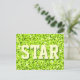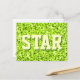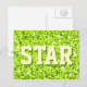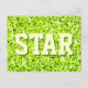 Carte postale au design moderne avec étoiles éparpillées sur un arrière - plan motif stylisé "à paillettes" et "STAR" dans les tons vert citron. Peut être utilisé comme arrière - plan pour vos propres textes, images et idées. Veuillez noter qu'il s'agit d'une image d'art numérique imprimée, elle ne brille pas ou ne contient pas de parties scintillant ou de paillettes réelles.