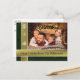 Une carte de Noël attrayante et attrayante avec votre photo de famille mise en valeur par des groupes d'or et un arrière - plan vert de Noël. Votre texte le long de la bande inférieure dans une police vert foncé facile à lire.Vous pouvez personnaliser le salut de Noël arrière, votre adresse de retour et vos noms dans le script près du bas avec de l'espace pour ajouter une note personnelle manuscrite.