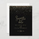 Ce script de fantaisie de confetti d'or sauvegarder la carte postale date est parfait pour un mariage rustique. Le design simple et élégant présente des confettis dorés brillants associés à une typographie stylisée.
