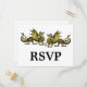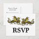 Parfait pour un mariage sophistiqué de jeu de table d'imaginaire à thème est cette Elegant Dragons Wedding RSVP Postcard avec une paire de dragons d'or colorée vibrante. Facile à customiser, il suffit d'ajouter les détails de votre mariage dans les champs de texte fournis. Cliquez sur "Customiser" pour trouver d'autres options de personnalisation.