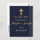 Carte Postale Gold marine bleu élégante typographie Enregistrer