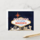 La carte postale mariage présente un thème classique de Las Vegas dans le ciel nocturne. Une image en skyline de la bande Vegas est imprimée sur la partie inférieure d'un motif doré. L'enseigne rétro classique "Bienvenue à Las Vegas" est imprimée en haut. Vous pouvez personnaliser le panneau pour inclure vos propres informations de mariage personnalisées ou d'autres textes.