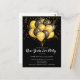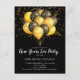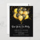 Ballons d'or et de noir sur noir avec confettis d'or et étoiles New Years Eve Party Invitations. Personnalisez-vous pour votre fête.