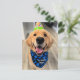 Carte Postale Golden Retriever avec chapeau et bandana d'anniver