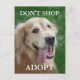 Cette carte postale présente la photo d'un chien de repérage d'or heureux, accompagnée de la citation "N'achetez pas, adoptez". Parfait pour les groupes de secourt de chiens et les sauveteurs individuels.