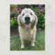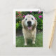 Carte Postale Golden Retriever souriant avec des fleurs Merci