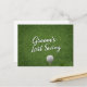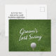 Célébrez la dernière partie de golf du marié avec style grâce à cette carte postale sur le thème du bachelor golf, mettant en vedette une balle de golf classique sur une herbe verte luxuriante. Propre, simple et inspiré des clubs de golf, ce design est parfait pour annoncer un week-end de golf bachelor, un voyage de golf de destination ou la célébration de pré-mariage du marié.