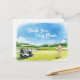 Carte Postale Golf femme golfer avec chariot sur vert