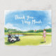 Célébrez votre amour pour le jeu avec cet élégant Golfeur de Femme avec Golf Panier sur Carte Postale Verte! Doté d'une golfeuse gracieuse, cette scène d'aquarelle saisit la beauté et le calme d'une journée de golf parfaite. Le design met en valeur des textures douces d'aquarelle, des fairways luxuriants et une atmosphère sereine. idéal pour les amateurs de golf, les joueurs ou toute personne qui aime envoyer un remerciement ou une note du parcours élégant.