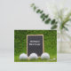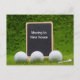 Golf déménager dans une nouvelle maison sur tableau de bord vert Carte postale