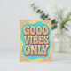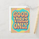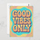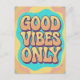 Fun quote text groovy 70s style typography with text good vibes only design.