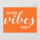 Carte Postale Good Vibes uniquement Positivity Affirmation Orang