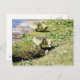 Cute Canada Goose gosling, cueillir la fleur. Carte postale.