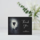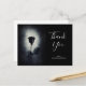 Une carte de remerciement de soirée sombre et mystérieuse avec une illustration cool d'une rose noire de style goth / emo avec du sang rouge qui coule sur ses pétales. Un fond grunge noir avec une couleur blanc cassé au centre mettant en valeur cette rose sombre et macabre.