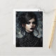 Postcard présente l'oeuvre peinte à l'huile d'une jeune femme gothique à la mode noire victorienne. Elle est frappante, avec un regard intense dirigé vers le spectateur. Son regard pourrait aussi être considéré comme sorcier ou vampirique. arrière - plan Abstrait texturé dans différentes nuances de gris et d'autres couleurs neutres.