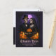 This gothic personalized wedding thank you postcard features a sugar skull skeleton couple in wedding attire with orange flowers and candles . The back of the postcard has your thank you message and signature to customize . Congrats on your wedding! Images generated with AI.