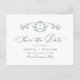 Élégante Carte Postale de Mariage Fleur de Jardin Française Vert Sage Enregistrer la Date.