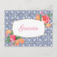 Carreaux bleu foncé et blanc complétés par des agrumes aquarelles peints à la main, des fleurs roses vibrantes et des feuilles vert brillant. Cette conception correspond à ma papeterie Fête des mariées / Baby shower dans la même gamme (collection).