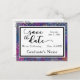Célébrez votre diplômé préféré avec cette carte postale moderne et amusante Save the Date. Les mots "enregistrer la date" ont été rendus en noir avec une police de script moderne de ma collection. L'expression est un graphique qui peut être redimensionné ou repositionné comme vous le souhaitez. Tous les autres textes peuvent être édités et ont été configurés dans le modèle à l'aide d'une police serif polyvalente en noir. /// L'effet de bordure, qui complète plusieurs autres produits avec ce design, a été réalisé en ajoutant une image numérique d'un morceau de mon art graphique coloré, texturé, dans les tons violets, roses, bleus et verts qui remplit la surface. Cette image artistique est partiellement recouverte d'un rectangle blanc et noir bordé de blanc. Cela permet aux éléments de conception amusants de se montrer autour des bords, et permet aux éléments de texte de s'afficher magnifiquement. /// Le verso comprend un champ d'adresse de retour modifiable ; il suffit de remplacer le texte de remplissage par le vôtre.