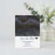 Une fête de remise de diplômes enregistre la date carte postale. Conçu avec une illustration de capuchon de graduation noir et une belle image de pierre d'agate abstraite foncée. Les couleurs tourbillonnent par vagues. Les couleurs principales sont le noir, le bleu-gris avec un ruban d'or faux qui traverse la conception. Moderne et tendance.