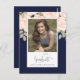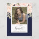 Carte Postale Graduation Photo Elégant Moderne Floral Marine Ble