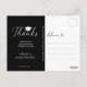 Merci à votre famille et à vos amis pour leurs cadeaux de remise de diplômes et leurs voeux avec cette élégante carte postale personnalisée. Ce modèle design chic présente votre photo avec un habillage noir en bas et un script blanc à la main moderne qui dit "Merci" et votre nom, et classe/année ci-dessous. Le verso de la carte contient une note de remerciement et une signature pour que vous personnalisiez un arrière - plan vert. Félicitations pour votre diplôme ! Conçu par l'artiste Susan Coffey.