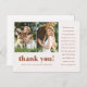 Moderne graduation merci cartes postales caractéristiques typographie lunatique avec deux photos et un message de remerciement sur le devant, avec adresse de retour sur le dos.