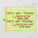 Ce design hilarant pour les écrivains, les éditeurs, les bibliothécaires, les professeurs d'anglais et les snobs de grammaire illustre l'importance de la ponctuation. Quand vous appelez Timmy pour dîner, vous avez besoin d'une virgule. Quand vous composez pour cannibaliser Timmy sur un radeau de sauvetage, laissez la virgule derrière. Timmy sera reconnaissant dans la situation #1 - et tous les autres sur le radeau seront reconnaissants dans la situation #2. Quelle que soit la situation, vous serez un membre fier de la police de grammaire. L'arrière - plan ressemble à du papier jaune.