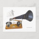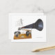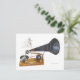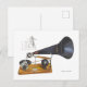 Cette carte postale présente un dessin d'un ancien gramophone victorien.