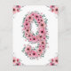 Beau neuvième anniversaire grand numéro neuf décoré de jolies fleurs roses aquarelles et de feuillage vert. Cadeau d'anniversaire de 9 ans idéal pour votre petite fille pour une carte postale unique et très spéciale.