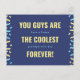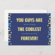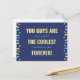 Célébrez le lien spécial que vous partagez avec vos grands-parents avec cette carte postale audacieuse et ludique. Avec un arrière - plan bleu marine, un texte jaune gai et des accents de confettis bleu et jaune, ce design est rempli de plaisir et d'énergie. Le message stimulant, "Vous êtes les plus cool pour toujours", en fait un moyen parfait de montrer votre appréciation et votre amour pour la Journée des grands-parents. Lumineux, moderne et plein de charme, c’est un véritable trésor.