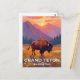Grand Teton National Park | Bison Animal Painting Wyoming Travel Postcard