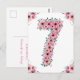 Magnifique septième anniversaire grand numéro sept décoré de jolies fleurs roses aquarelles et de feuillage vert. Cadeau d'anniversaire des 7 ans idéal pour votre petite fille pour une carte postale unique et très spéciale.