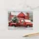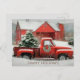 Carte Postale Grange rouge, paysage neigeux et arbre festif