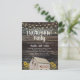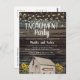 Carte d'invitation pour une fête de fiançailles avec un thème champêtre représentant un vieux grenier et des tournesols avec des guirlandes lumineuses suspendues au-dessus sur un fond en bois vieilli. Parfaite pour les mariés qui souhaitent un thème rustique et champêtre. Notre modèle de haute qualité vous permet de personnaliser facilement votre invitation. Également disponible avec photo. L'invitation de fiançailles fera partie d'une collection. Conçue par Beverly Arena-Bainbridge, créatrice de mariages Homespun Cottage Designs www.homespuncottagedesigns@gmail.com