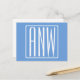 Carte Postale Gras moderne 3 initiales Monogramme | Bleu doux