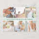 Une photo moderne, carte postale de remerciement conçue pour accueillir six de vos photos de mariage carré préférées dans une mise en page collage. Vos noms et messages personnalisés (avec "amour et remerciements") apparaissent au centre en lettres simples et minimalistes sur une bande de vert seaglass pâle. Les cartes postales sont inversées pour afficher votre adresse de retour avec suffisamment d'espace pour l'adressage du destinataire, ainsi qu'un message préimprimé en option. Si vous préférez ajouter un message manuscrit, supprimez simplement l'exemple de texte affiché.