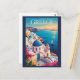 Carte Postale Grèce Santorin Illustration Voyage Art Vintage