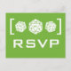 Cette carte postale D20 Dice Gamer Réponse Mariage en vert citron est parfaite pour le couple nerdy qui est tombé amoureux d'un intérêt partagé dans les jeux de rôle et planifie un mariage sur le même thème. Ce design décalé présente un trio simple et minimaliste de dés à vingt côtés. Facile à customiser, il suffit d'ajouter les détails de votre mariage dans les champs de texte fournis. Cliquez sur "Customiser" pour trouver d'autres options de personnalisation.