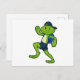 Carte Postale Grenouille courant avec sac à dos et chapeau