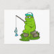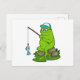 Carte Postale Grenouille en pêcheur avec canne à pêche et poisso