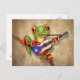 Carte Postale Grenouille Jouer Porto Rico Drapeau Guitare