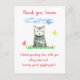 Un nom personnalisé de fête d'anniversaire merci carte postale décorée d'un petit chaton gris doux avec un visage blanc assis dans un coin de fleurs sauvages avec des bouffées de nuages au-dessus et des papillons colorés en visite. Cette carte postale a une invitation de fête d'anniversaire correspondante dans mon magasin. Vous pouvez modifier le texte en fonction de vos besoins.