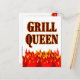 Une carte de recettes sur mesure avec un dicton amusant lire Grill Queen dans une police flamboyante occidentale avec flammes en rouge et orange. Avec l'art graphique des flammes rouge et orange au fond du design. Cliquez sur Customiser pour modifier les polices ajouter du texte, même enregistrer votre conception pour plus tard.