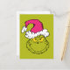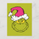 This fantastic, bold illustration is a close-up portrait of the Grinch in full mischievous mode! He has his signature sly grin and bright yellow eyes, but his look is updated with a large, fluffy Santa hat in a fun, unexpected pink/fuchsia color instead of the traditional red. This graphic is perfect for anyone who loves the holidays but embraces a non-traditional, delightfully grumpy, and colorful style!