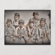 Image vintage des dockers/ouvriers du chantier naval assis ensemble dans les salons et les casquettes. Image d'archive publique 2ème guerre mondiale en design graphique.