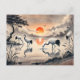 Carte Postale Grue dans le marais au coucher du soleil Peinture