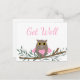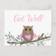 Carte de vœux de rétablissement hibou rose.