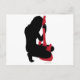 Silhouette d'une fille avec une guitare. La fille est en noir et la guitare en rouge.