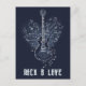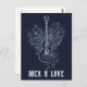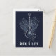 Cette conception de carte postale bleu foncé présente un croquis d'une guitare électrique placée devant un cœur fait de notes de musique. Il y a un message personnalisable "rock n love". Cette conception est idéale pour les amateurs de musique et de rock & roll.
